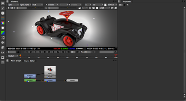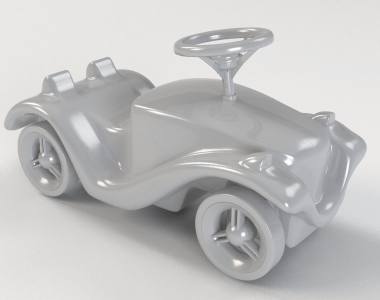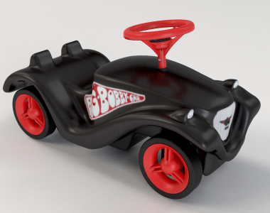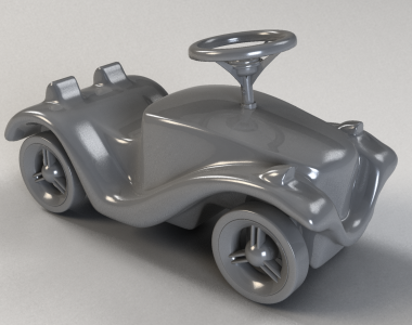 Now we can light the scene and shade the objects (in my case the Bobby Car) as the image will render with a gamma correction that is suited for computer display devices. The physical light simulation is returning expected results.